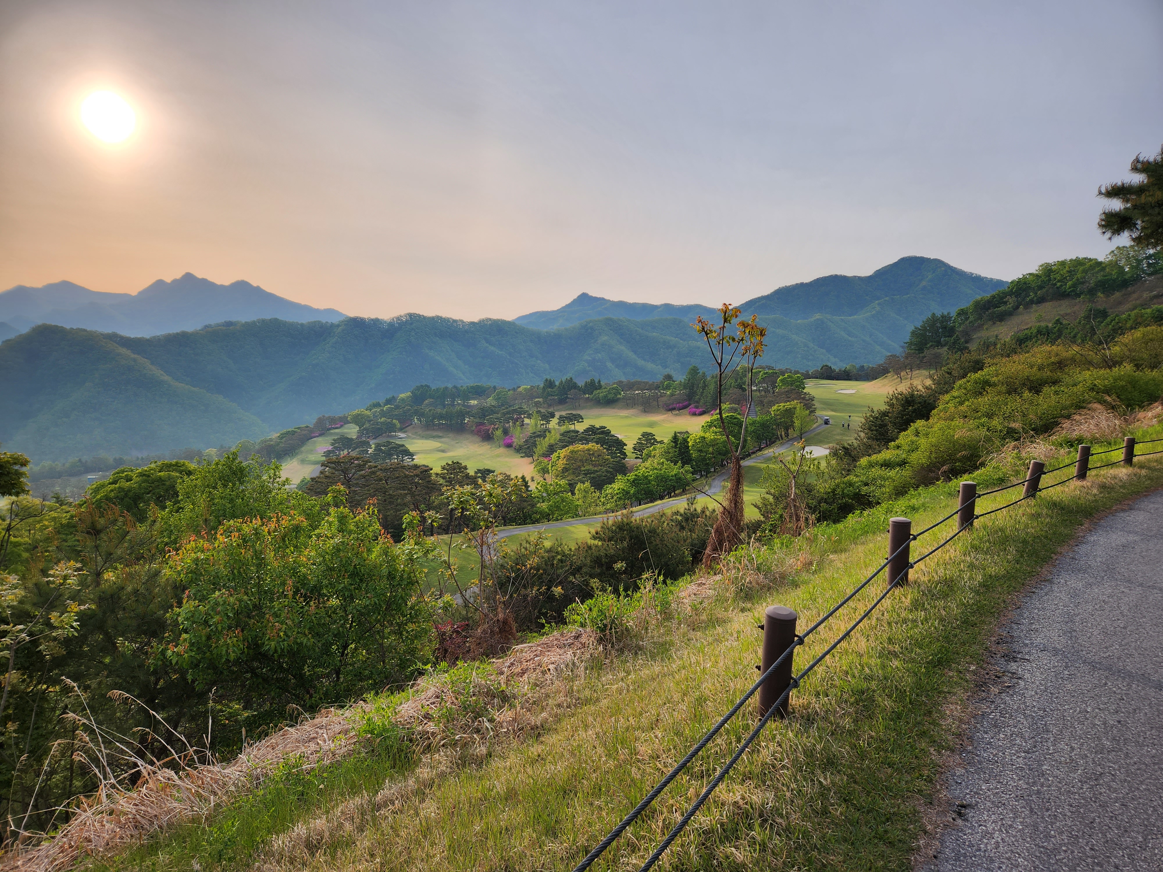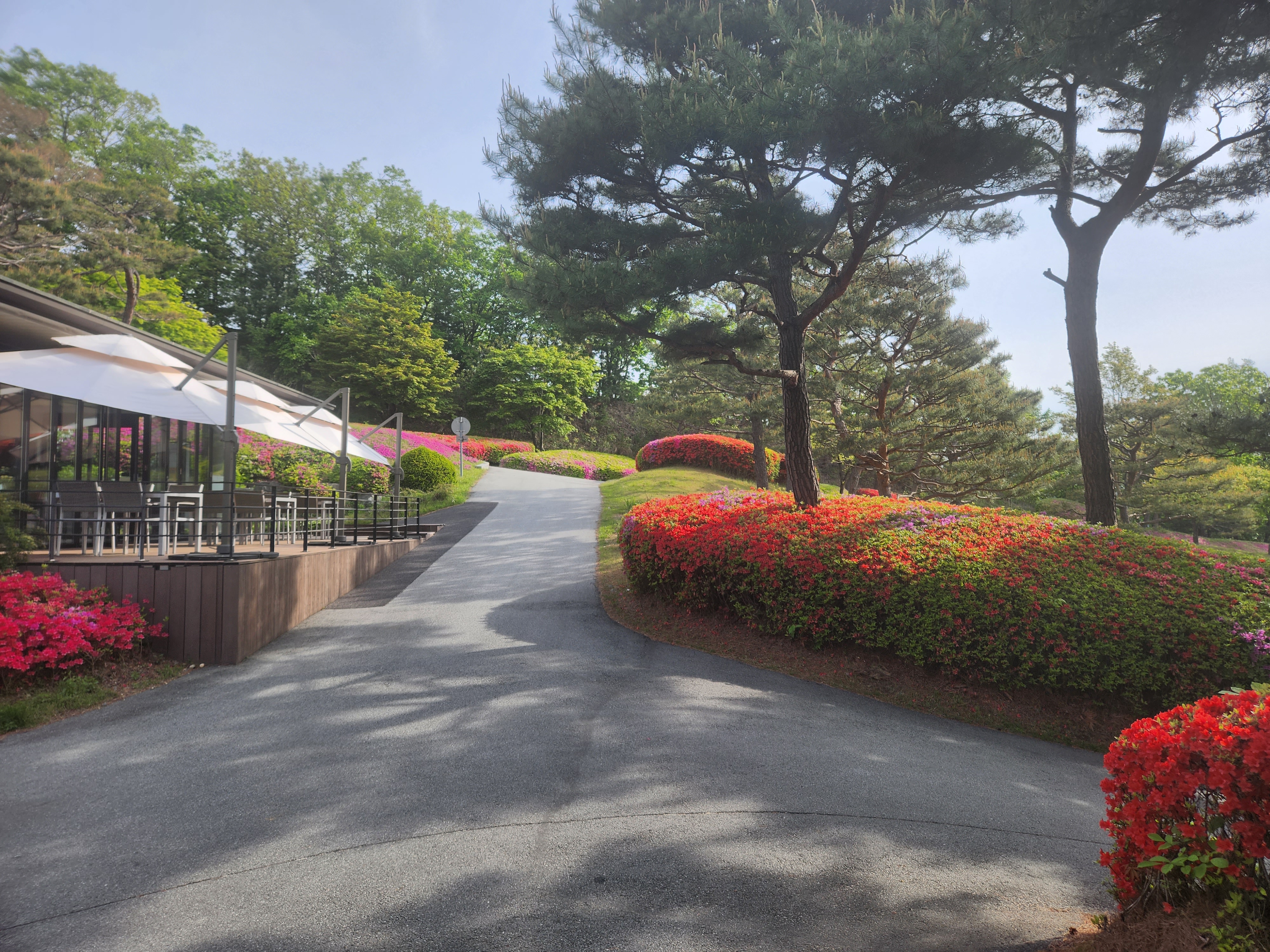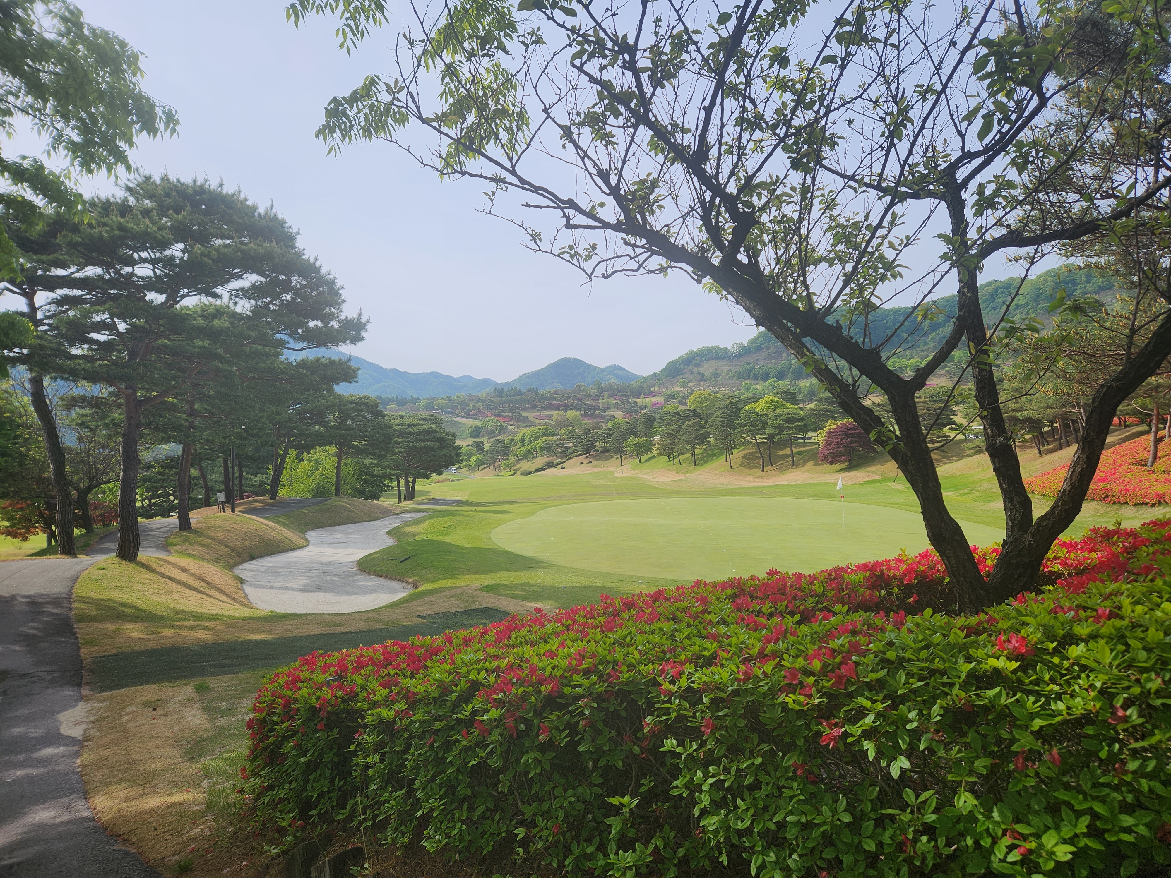 일단 필드로 나간뒤 느낌은 완전 꽃밭. 연산홍이 한창인 좋은 계절에 왔다는 걸 느꼈다. 빨깡, 분홍, 하얀생으로 불들은 꽃들을 보면 현재 살고 있는 청평보다 꽃이 좀 늦어서 완전 한창일때 오게 된것으로 모두가 탁월한 선택이었슴을 인정해 주었다. ㅎㅎ