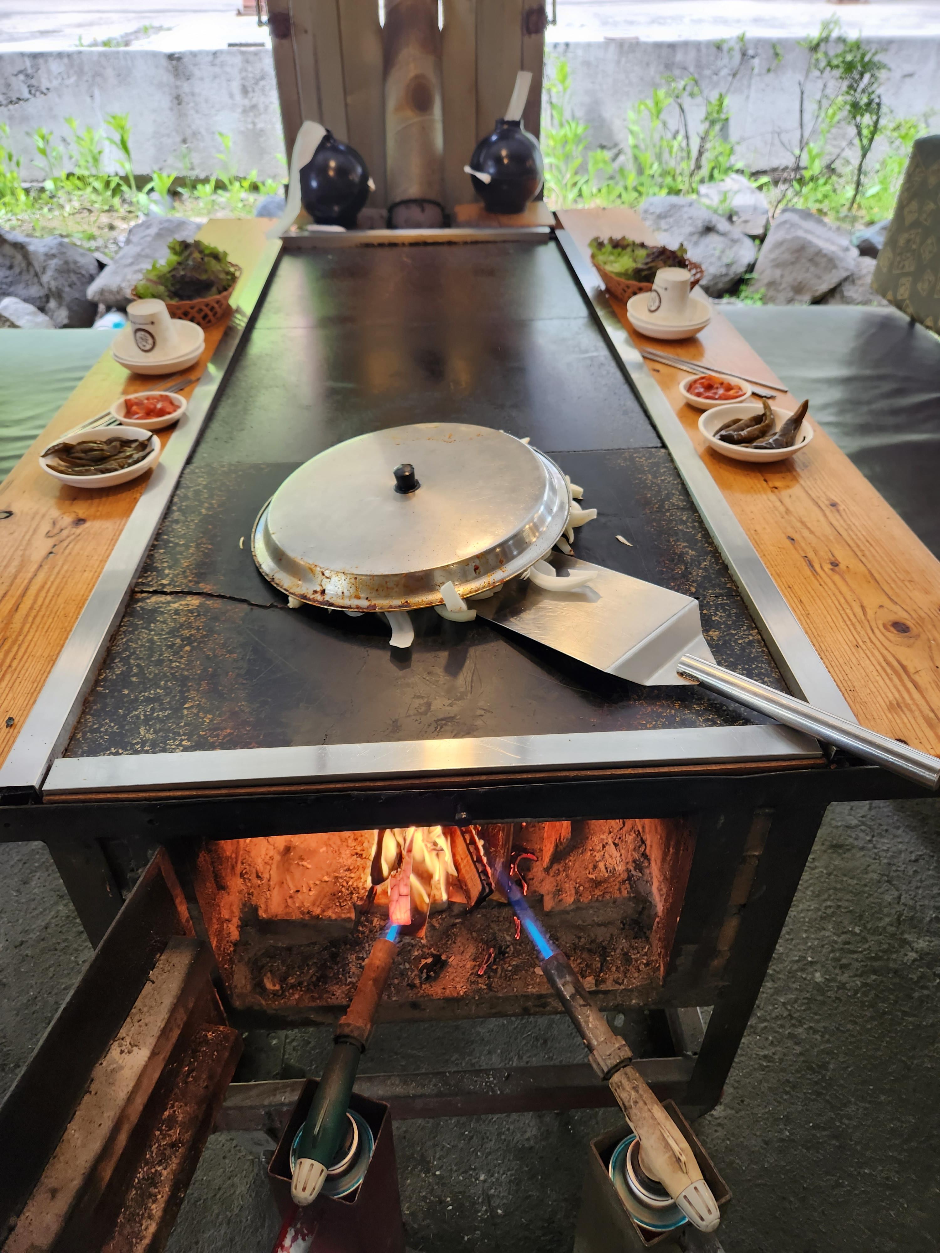 돌판위에 양념된 순살 닭갈비와 양파만이 이루어져 있는데 돌판이어서인지 맛은 괜찮았다. 특히 후에 볶아 먹는 밥은 누룽지가 되어 맛이게 볶아진다. 퍼포먼스는 좋으나 포장은 안할듯. 이곳에 와서 먹어야 제맛. 그런데 가격 대비 양이 많이 작다