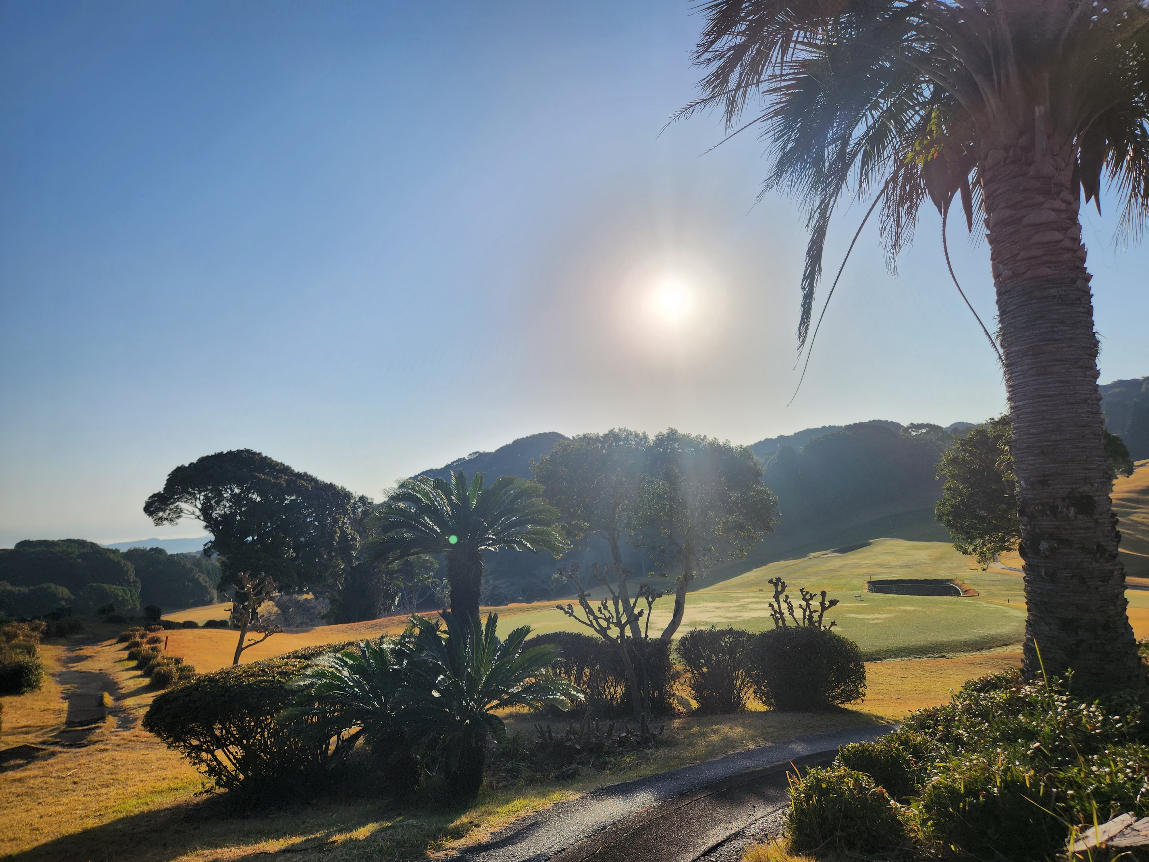 거리도 적당히 길고, 페어웨이도 넓고, 잔디관리도 디봇이 않보일정도로 관리가 잘 되어 있다. 조경도 야자수도 있고, 나무들이 잘 다듬어져 있으며, 수목들이 보지 못한 것들이 있어 이국적, 아니 제주도와 비슷할 정도의 모습이다. 단 이렇게 맑은 날씨에 바람도 없다. 골프치는 날씨치고 정말 1년에 하루이틀 될까하는 환상적 날씨... 단, 좌외선이 무지 쎈것 같다. 썬크림을 9홀 마다 발랐음에도 얼굴이 타는 것을 보면, 맑은 날씨여서 더욱 좌외선을 받을 수 밖에 없는 것 같다. 중간중간 계속 썬크림을 발라야 할듯.
